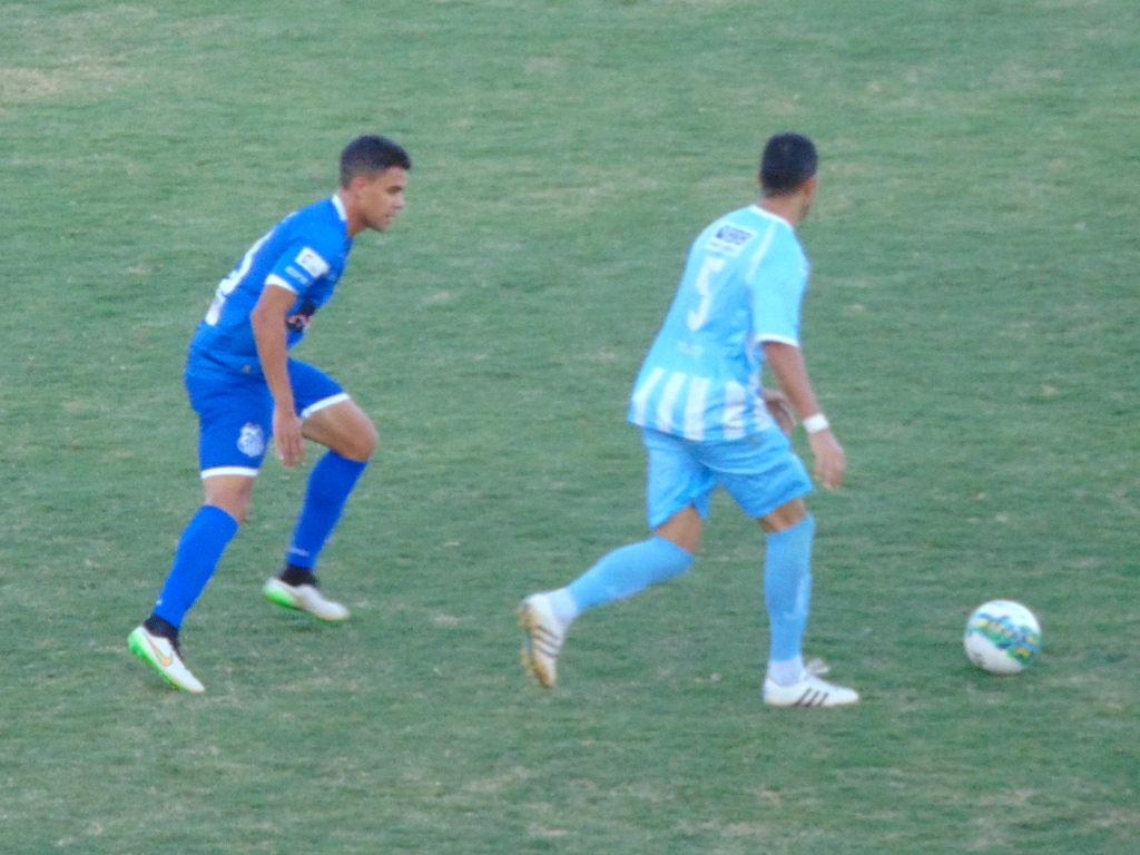 Dois lances da primeira etapa: jogador do Luziânia recebe marcação.